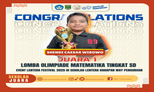 Selamat dan Suskses ! Shendi Caesar Wibowo, kembali mengharumkan nama sekolahnya dengan meraih prestasi gemilang di ajang Olimpiade Matematika tingkat SD dalam Lentera Festival 2025, Kamis 27 Februari 2025. yang diselenggarakan di Sekolah Lentera Harapan, Kecamatan Way Pengubuan. Dengan kecerdasan dan ketekunan yang dimilikinya, Shendi berhasil menaklukkan soal-soal matematika yang menantang dan mengungguli peserta lainnya.